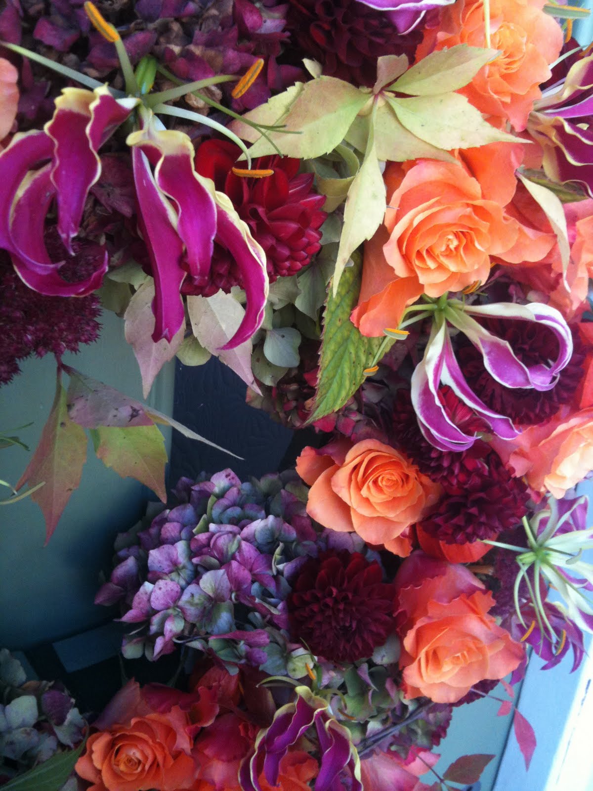 Forget any idea of a wreath being funereal, this beauty is bursting with life that will welcome your guests in glowing style!